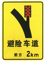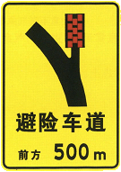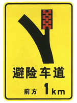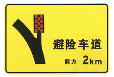 设置了避险车道的道路上。在其前方适当位置应至少设置一块避险车道标志。